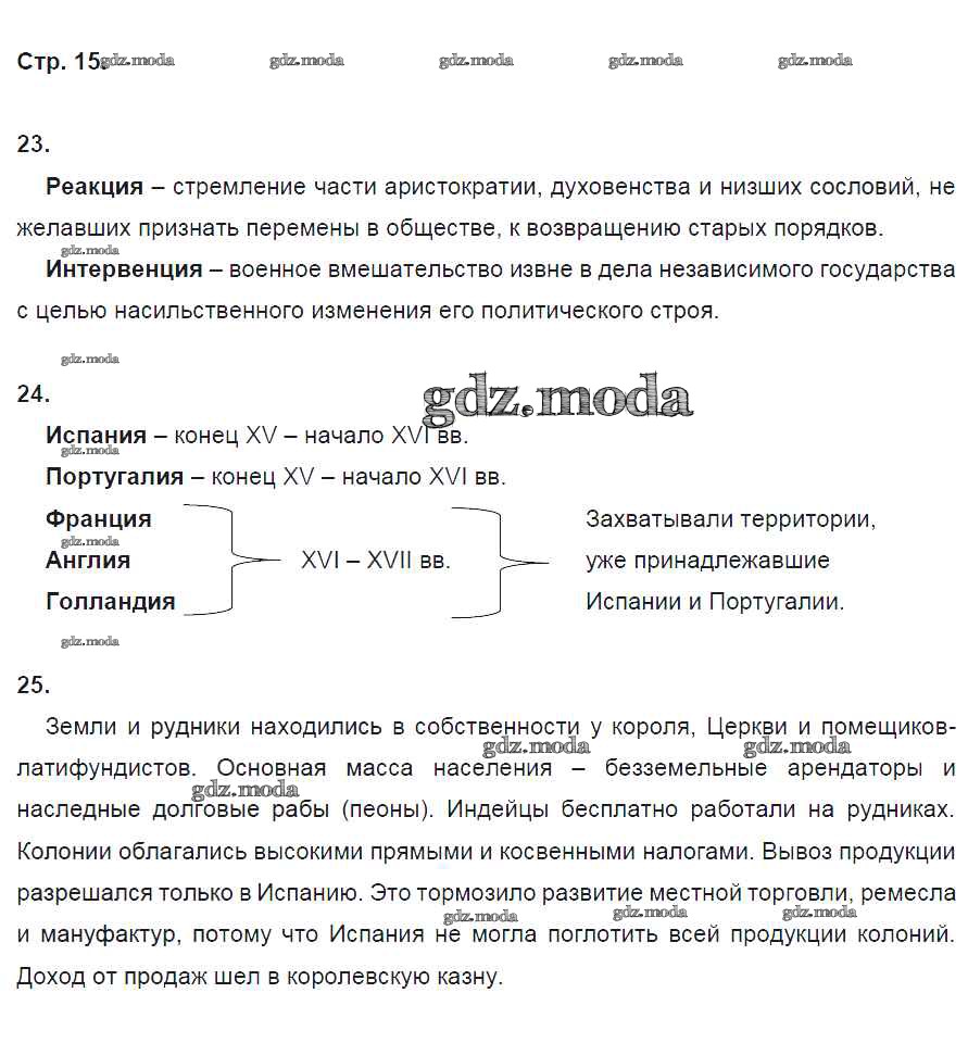 ГДЗ решение к заданию № 15 Всеобщая История 8 класс рабочая тетрадь Ермакова И.А. (к уч. Загладина Н.В.) Русское слово 2017 ФГОС бесплатно на гдз.мода!