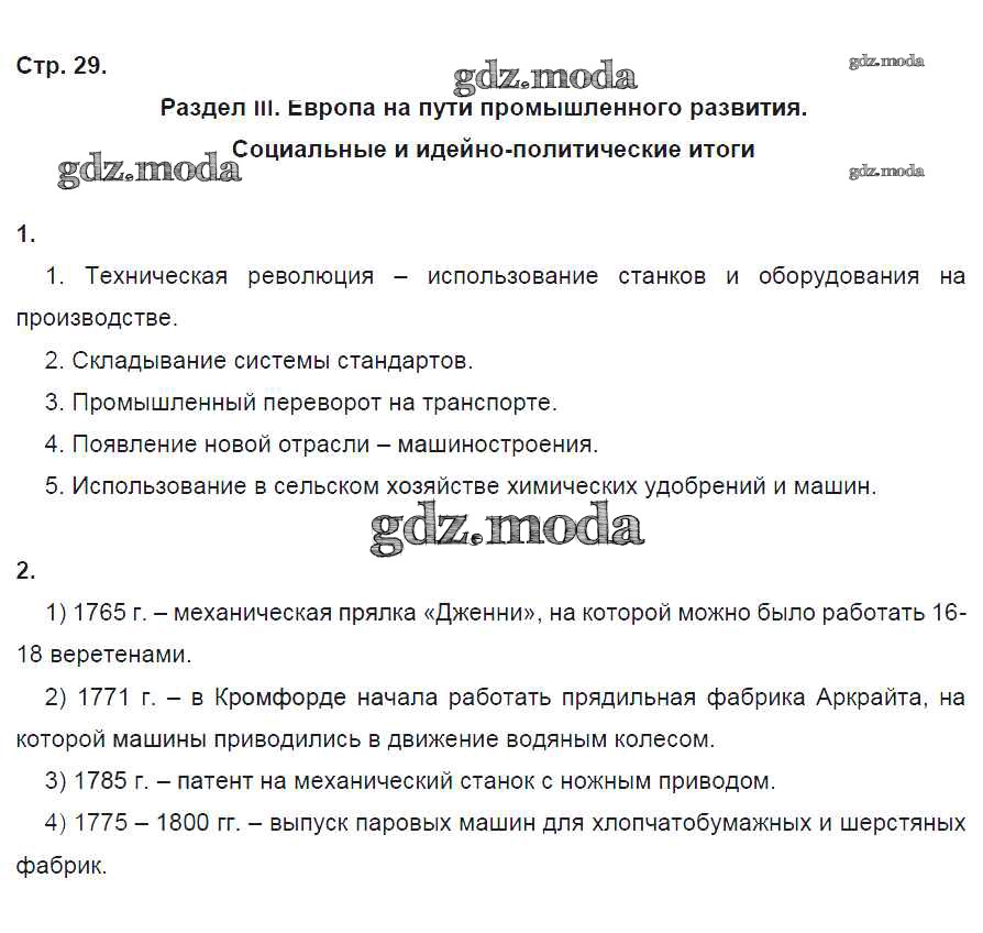 ГДЗ решение к заданию № 29 Всеобщая История 8 класс рабочая тетрадь Ермакова И.А. (к уч. Загладина Н.В.) Русское слово 2017 ФГОС бесплатно на гдз.мода!