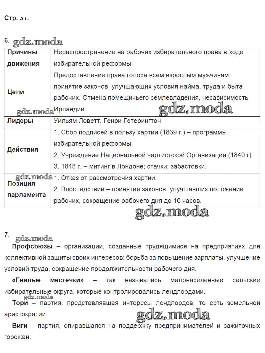 ГДЗ решение к заданию № 31 Всеобщая История 8 класс рабочая тетрадь Ермакова И.А. (к уч. Загладина Н.В.) Русское слово 2017 ФГОС бесплатно на гдз.мода!