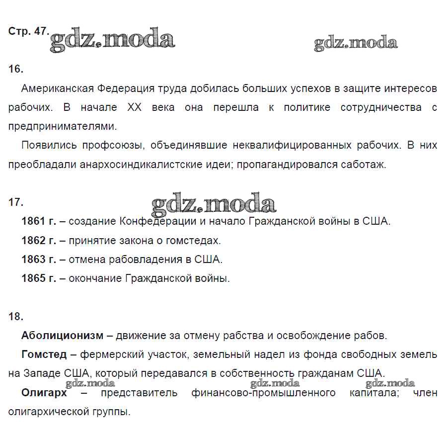 ГДЗ решение к заданию № 47 Всеобщая История 8 класс рабочая тетрадь Ермакова И.А. (к уч. Загладина Н.В.) Русское слово 2017 ФГОС бесплатно на гдз.мода!