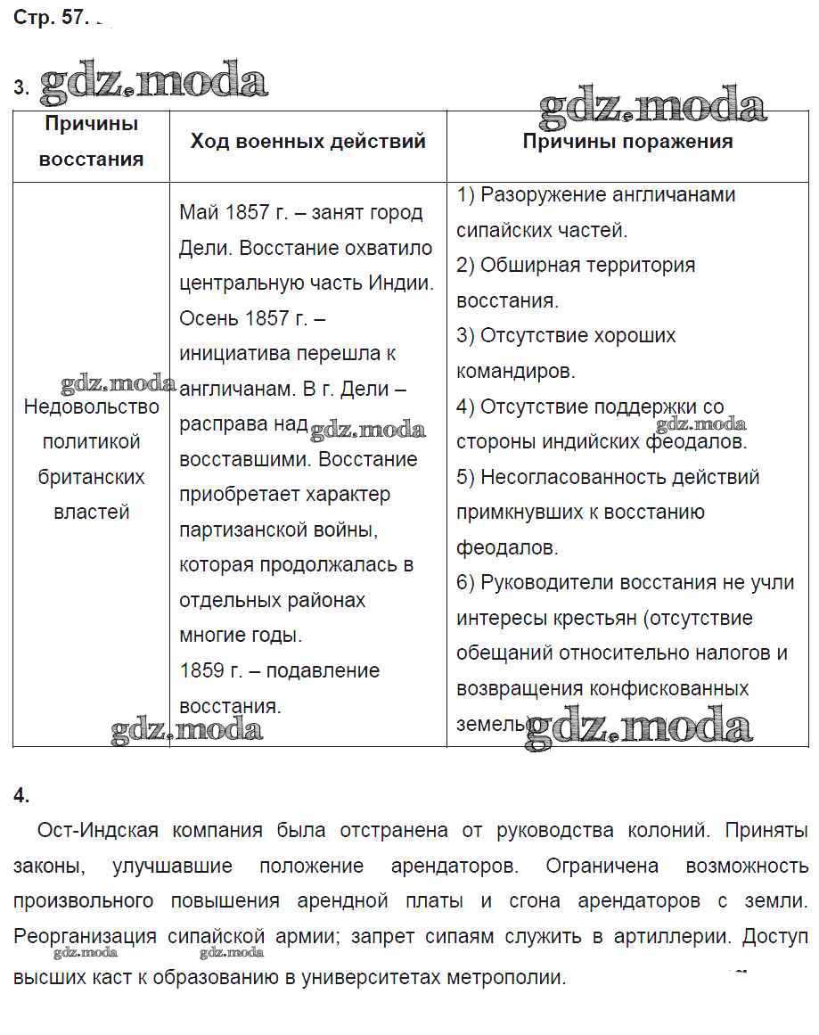 ГДЗ решение к заданию № 57 Всеобщая История 8 класс рабочая тетрадь Ермакова И.А. (к уч. Загладина Н.В.) Русское слово 2017 ФГОС бесплатно на гдз.мода!