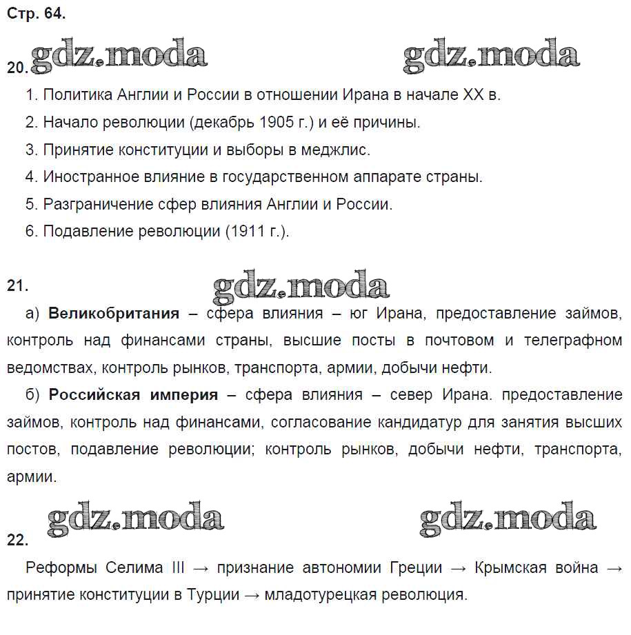 ГДЗ решение к заданию № 64 Всеобщая История 8 класс рабочая тетрадь Ермакова И.А. (к уч. Загладина Н.В.) Русское слово 2017 ФГОС бесплатно на гдз.мода!