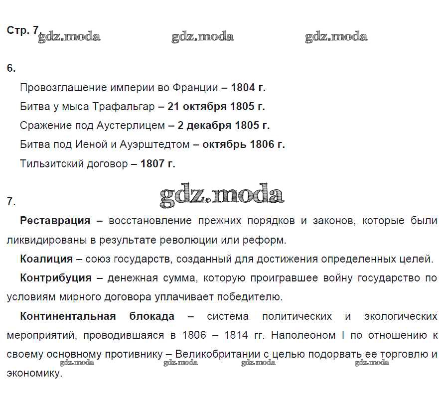 ГДЗ решение к заданию № 7 Всеобщая История 8 класс рабочая тетрадь Ермакова И.А. (к уч. Загладина Н.В.) Русское слово 2017 ФГОС бесплатно на гдз.мода!