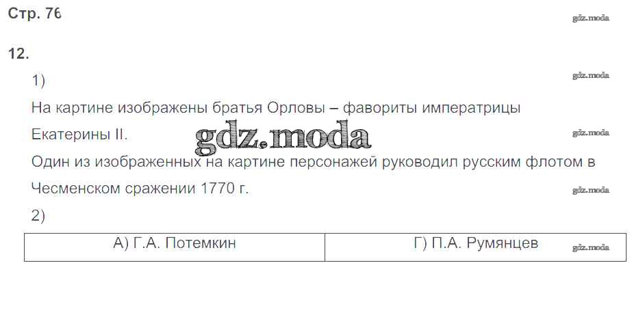 ОТВЕТ на задание № 76 Рабочая тетрадь по Истории 8 класс Гевуркова УМК