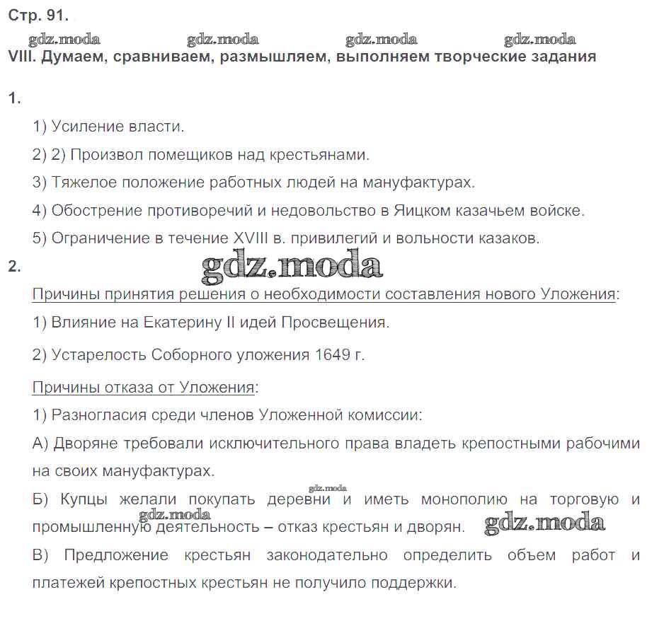ОТВЕТ на задание № 91 Рабочая тетрадь по Истории 8 класс Гевуркова УМК