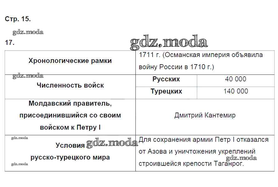 ОТВЕТ на задание № 15 Рабочая тетрадь по Истории 8 класс Кочегаров Инновационная школа