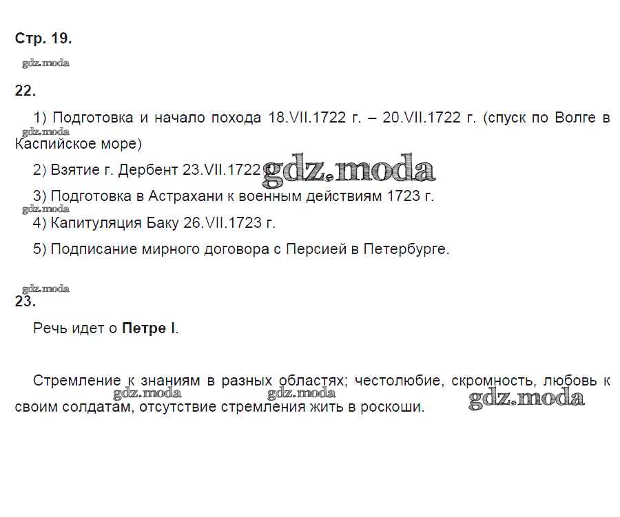 ОТВЕТ на задание № 19 Рабочая тетрадь по Истории 8 класс Кочегаров Инновационная школа