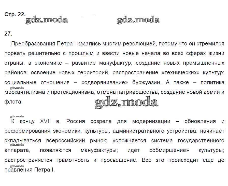 ОТВЕТ на задание № 22 Рабочая тетрадь по Истории 8 класс Кочегаров Инновационная школа