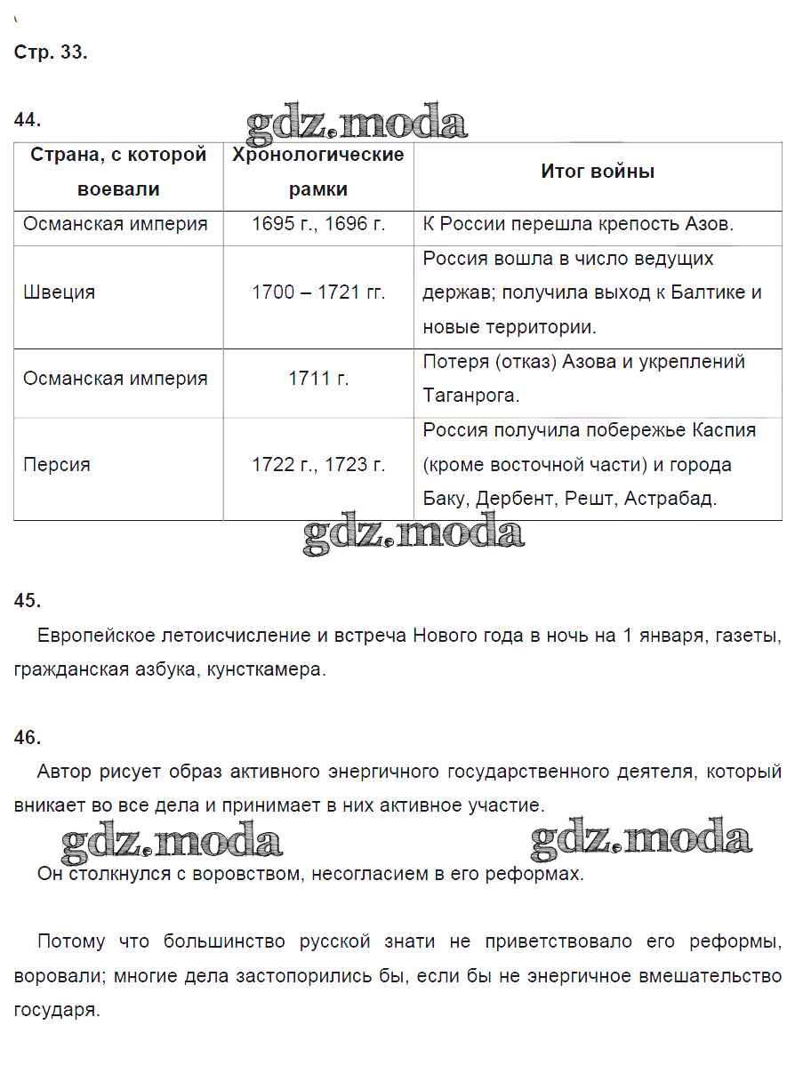 ОТВЕТ на задание № 33 Рабочая тетрадь по Истории 8 класс Кочегаров Инновационная школа