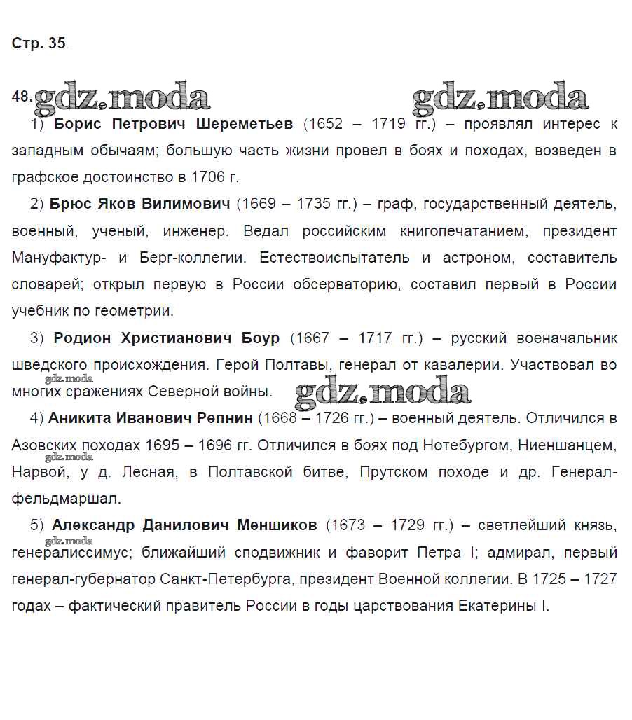 ГДЗ решение к заданию № 35 История России 8 класс рабочая тетрадь Кочегаров К.А. Русское слово 2017 ФГОС бесплатно на гдз.мода!