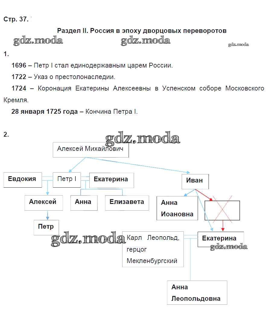 ГДЗ решение к заданию № 37 История России 8 класс рабочая тетрадь Кочегаров К.А. Русское слово 2017 ФГОС бесплатно на гдз.мода!