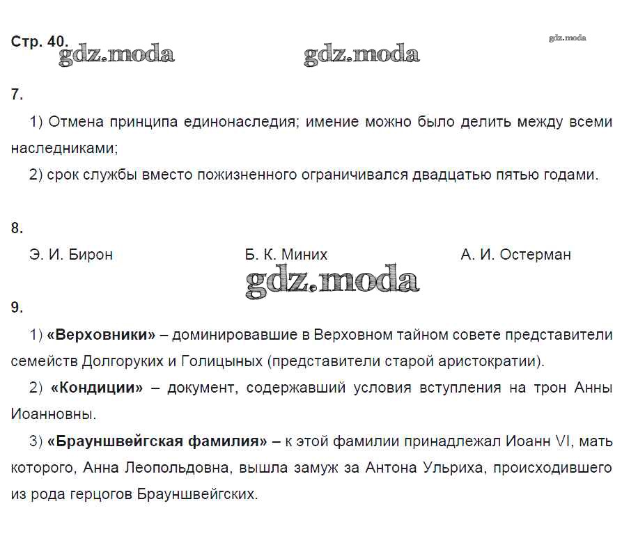 ГДЗ решение к заданию № 40 История России 8 класс рабочая тетрадь Кочегаров К.А. Русское слово 2017 ФГОС бесплатно на гдз.мода!