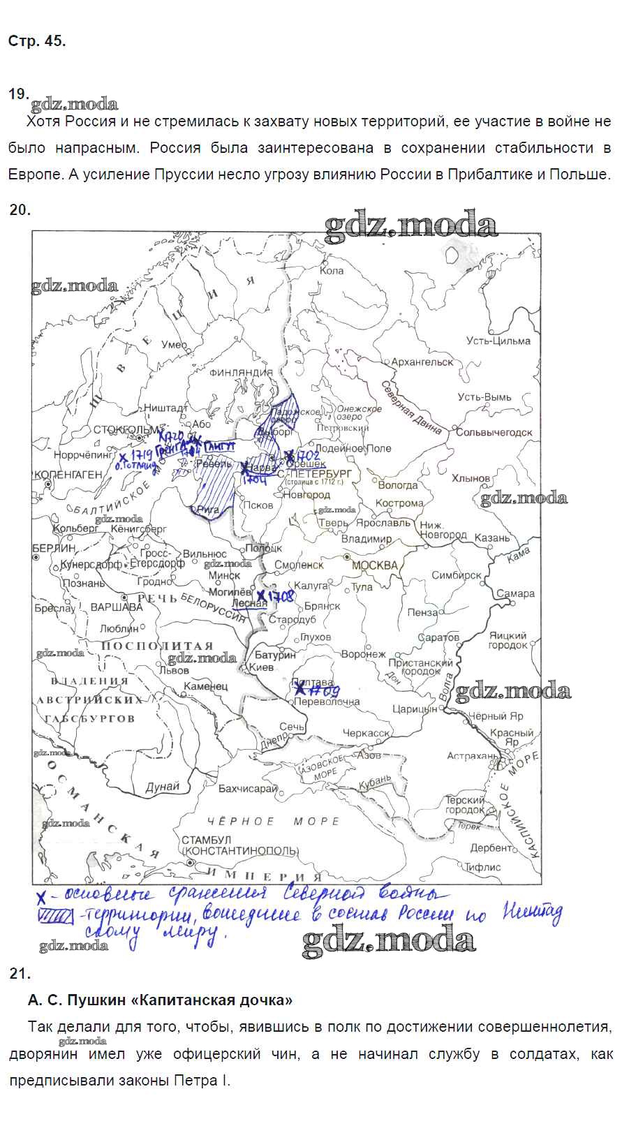 ГДЗ решение к заданию № 45 История России 8 класс рабочая тетрадь Кочегаров К.А. Русское слово 2017 ФГОС бесплатно на гдз.мода!