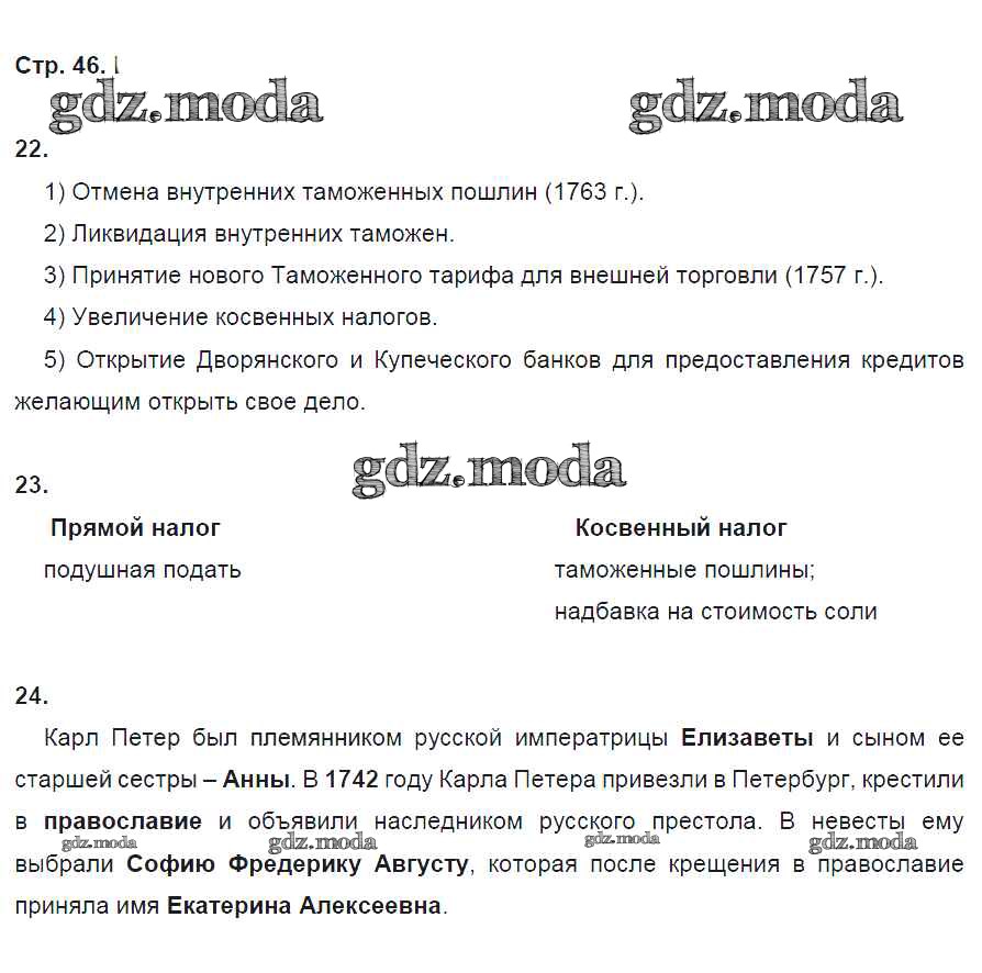 ГДЗ решение к заданию № 46 История России 8 класс рабочая тетрадь Кочегаров К.А. Русское слово 2017 ФГОС бесплатно на гдз.мода!