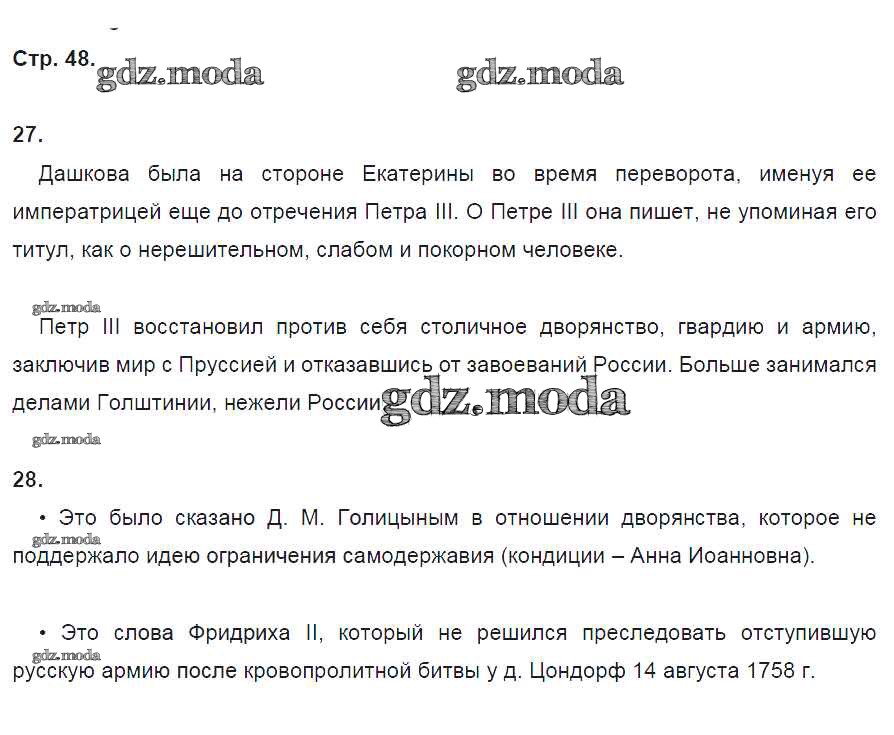 ГДЗ решение к заданию № 48 История России 8 класс рабочая тетрадь Кочегаров К.А. Русское слово 2017 ФГОС бесплатно на гдз.мода!