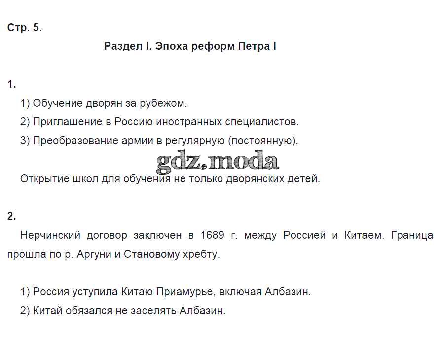 ГДЗ решение к заданию № 5 История России 8 класс рабочая тетрадь Кочегаров К.А. Русское слово 2017 ФГОС бесплатно на гдз.мода!
