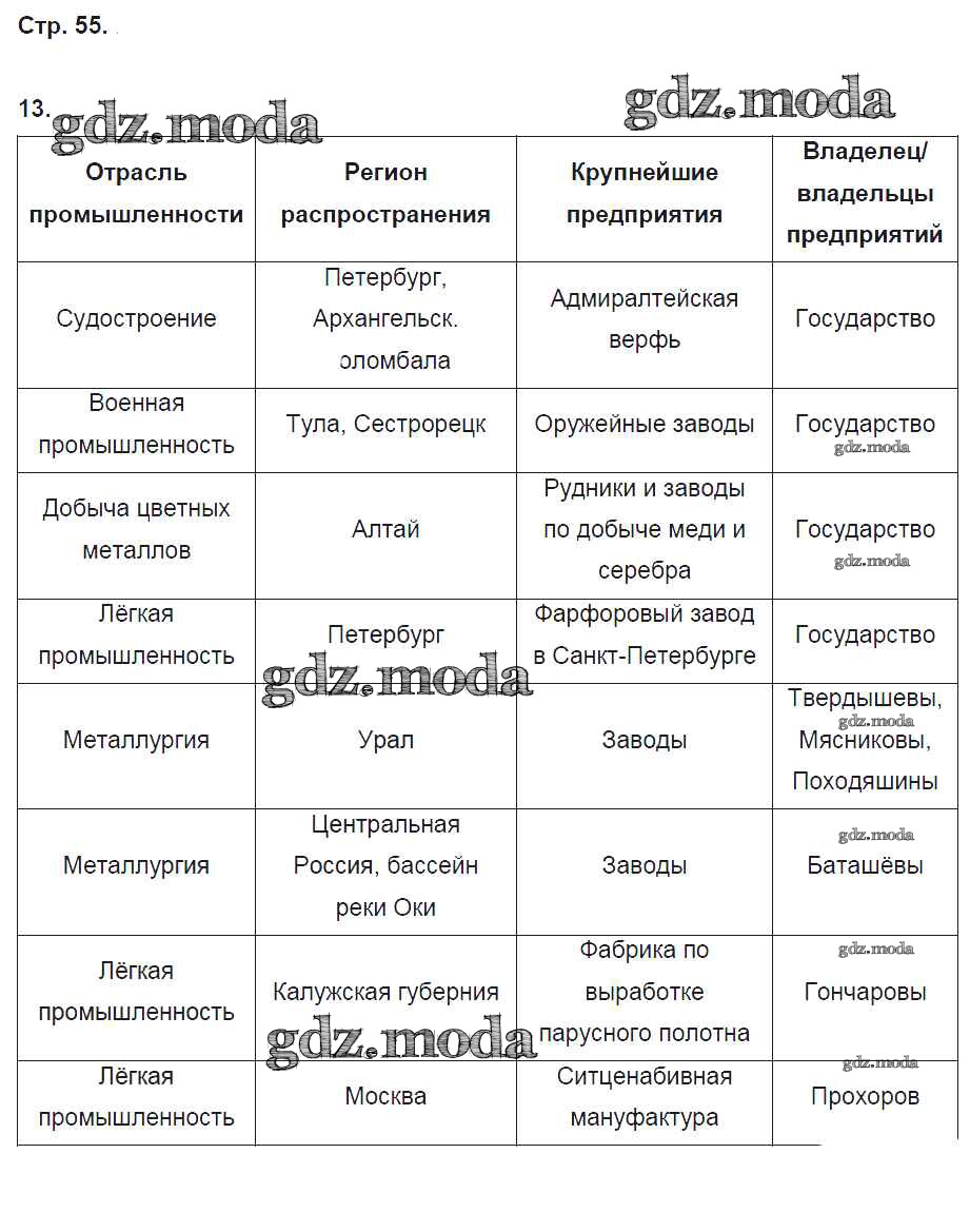 ГДЗ решение к заданию № 55 История России 8 класс рабочая тетрадь Кочегаров К.А. Русское слово 2017 ФГОС бесплатно на гдз.мода!