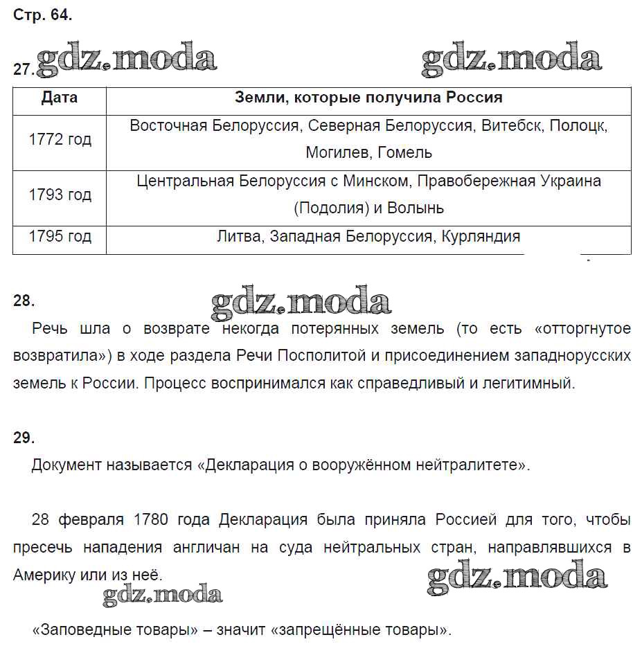 ОТВЕТ на задание № 64 Рабочая тетрадь по Истории 8 класс Кочегаров Инновационная школа