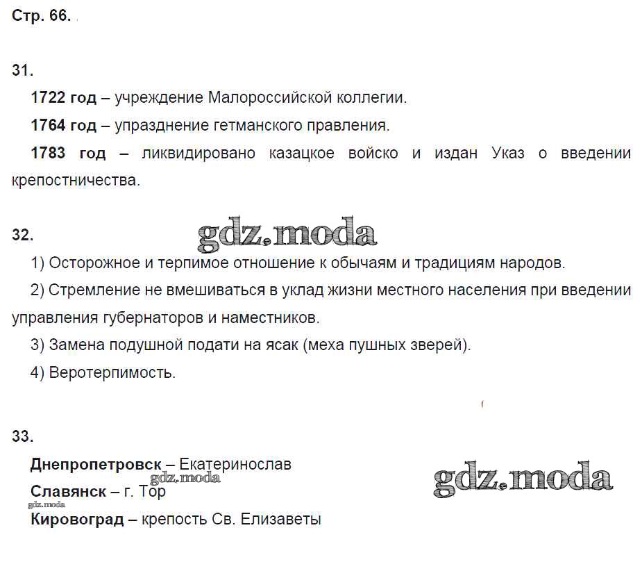 ОТВЕТ на задание № 66 Рабочая тетрадь по Истории 8 класс Кочегаров Инновационная школа
