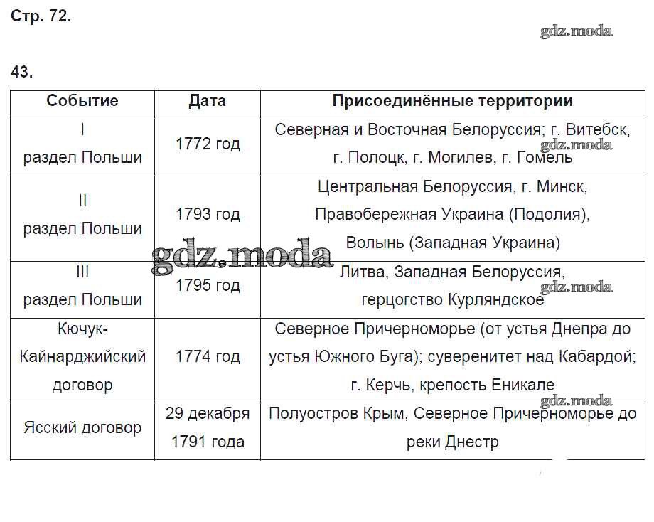 ГДЗ решение к заданию № 72 История России 8 класс рабочая тетрадь Кочегаров К.А. Русское слово 2017 ФГОС бесплатно на гдз.мода!
