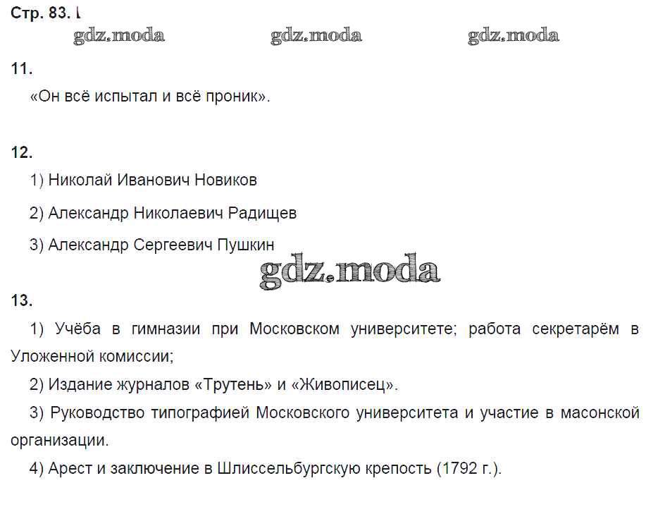 ГДЗ решение к заданию № 83 История России 8 класс рабочая тетрадь Кочегаров К.А. Русское слово 2017 ФГОС бесплатно на гдз.мода!