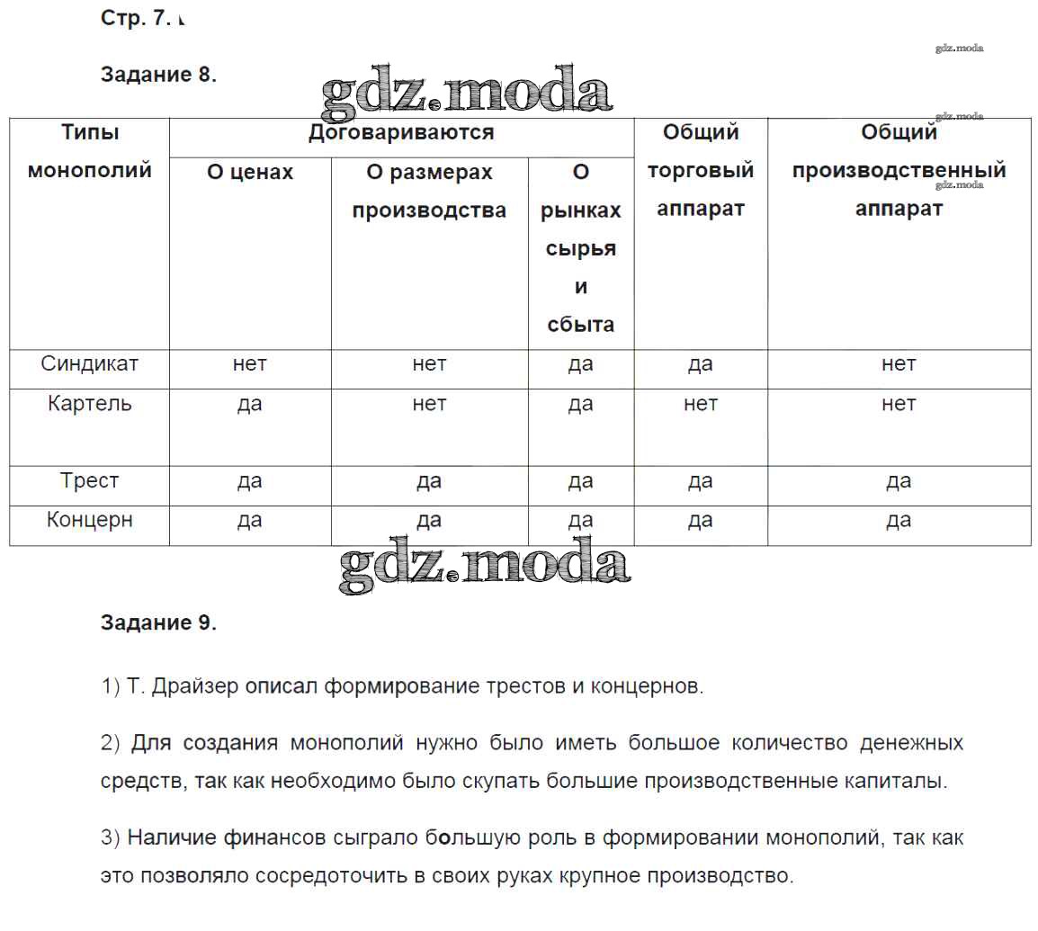 ОТВЕТ на задание № 7 Рабочая тетрадь по Истории 8 класс Румянцев УМК