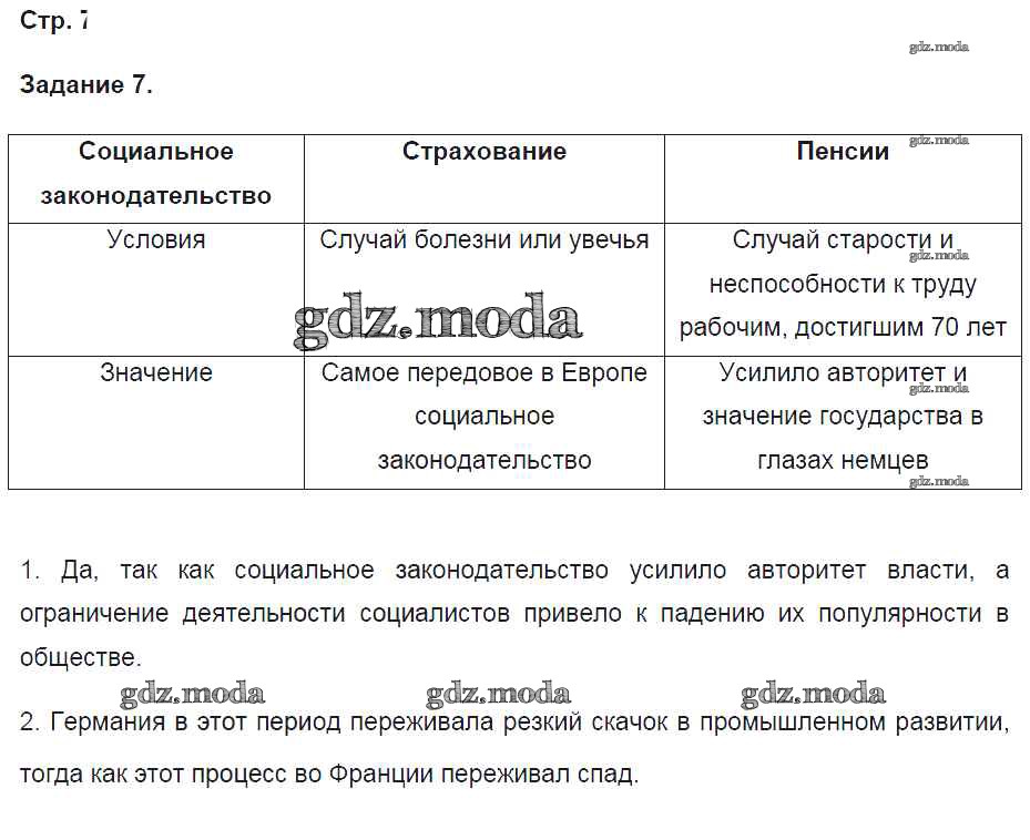 ОТВЕТ на задание № 7 Рабочая тетрадь по Истории 8 класс Румянцев УМК
