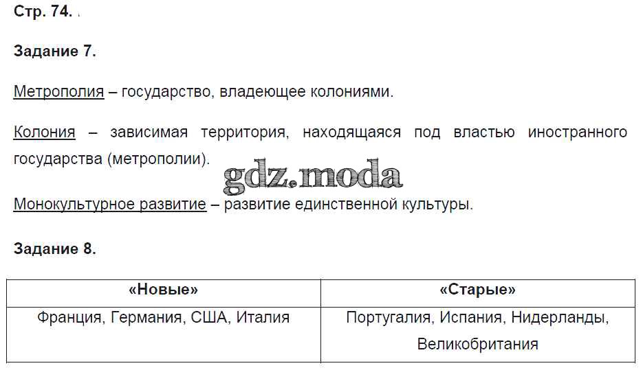 ОТВЕТ на задание № 74 Рабочая тетрадь по Истории 8 класс Румянцев УМК