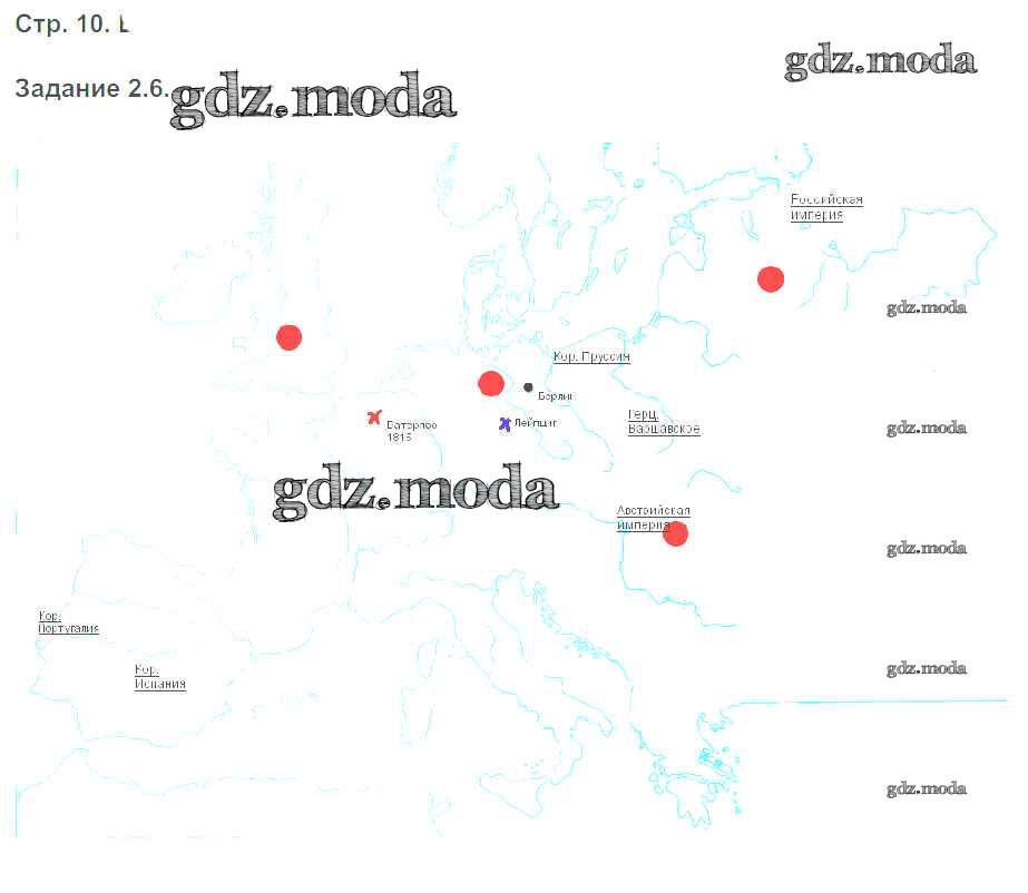 ОТВЕТ на задание № 10 Рабочая тетрадь с контурными картами по Истории 8 класс Пономарев УМК