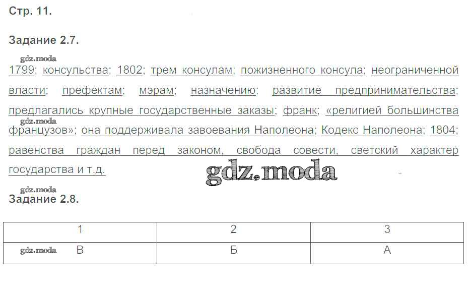 ГДЗ решение к заданию № 11 История 8 класс рабочая тетрадь с контурными картами Пономарев М.В. Экзамен 2015 ФГОС бесплатно на гдз.мода!