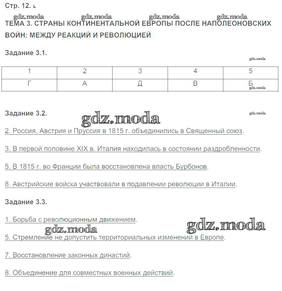 ГДЗ решение к заданию № 12 История 8 класс рабочая тетрадь с контурными картами Пономарев М.В. Экзамен 2015 ФГОС бесплатно на гдз.мода!