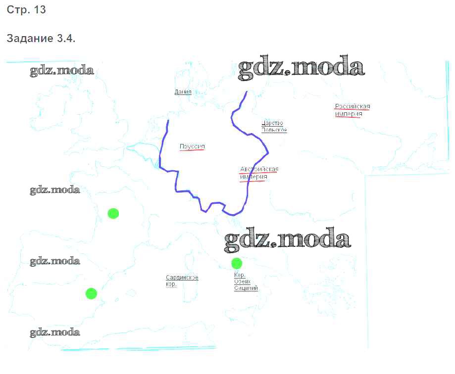 ОТВЕТ на задание № 13 Рабочая тетрадь с контурными картами по Истории 8 класс Пономарев УМК