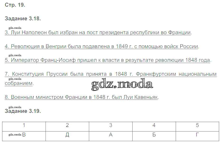 ГДЗ решение к заданию № 19 История 8 класс рабочая тетрадь с контурными картами Пономарев М.В. Экзамен 2015 ФГОС бесплатно на гдз.мода!