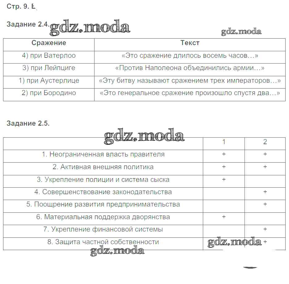 ГДЗ решение к заданию № 9 История 8 класс рабочая тетрадь с контурными картами Пономарев М.В. Экзамен 2015 ФГОС бесплатно на гдз.мода!
