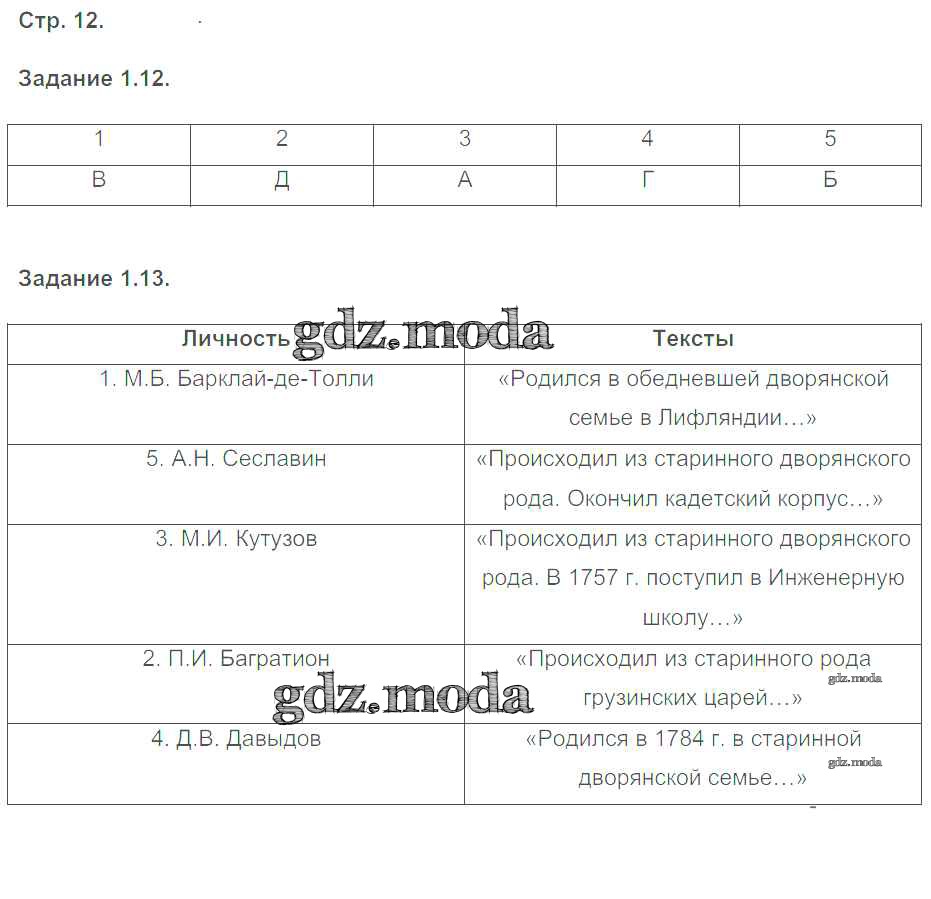 ГДЗ решение к заданию № 12 История России 8 класс рабочая тетрадь с контурными картами Симонова Е.В. Экзамен 2018 ФГОС бесплатно на гдз.мода!