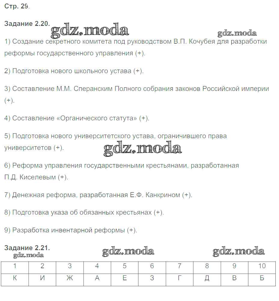 ГДЗ решение к заданию № 29 История России 8 класс рабочая тетрадь с контурными картами Симонова Е.В. Экзамен 2018 ФГОС бесплатно на гдз.мода!