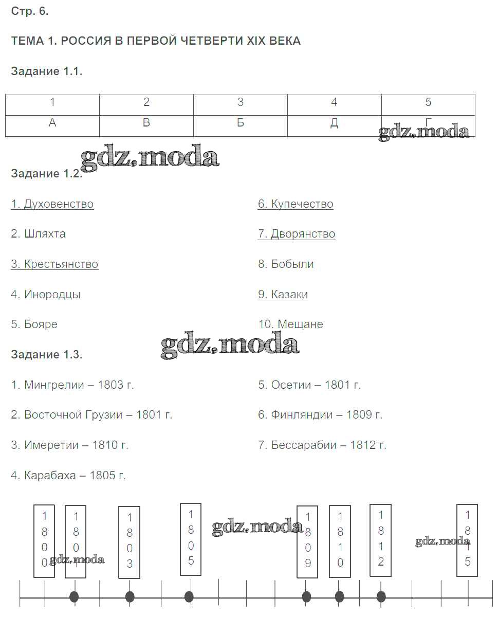 ГДЗ решение к заданию № 6 История России 8 класс рабочая тетрадь с контурными картами Симонова Е.В. Экзамен 2018 ФГОС бесплатно на гдз.мода!