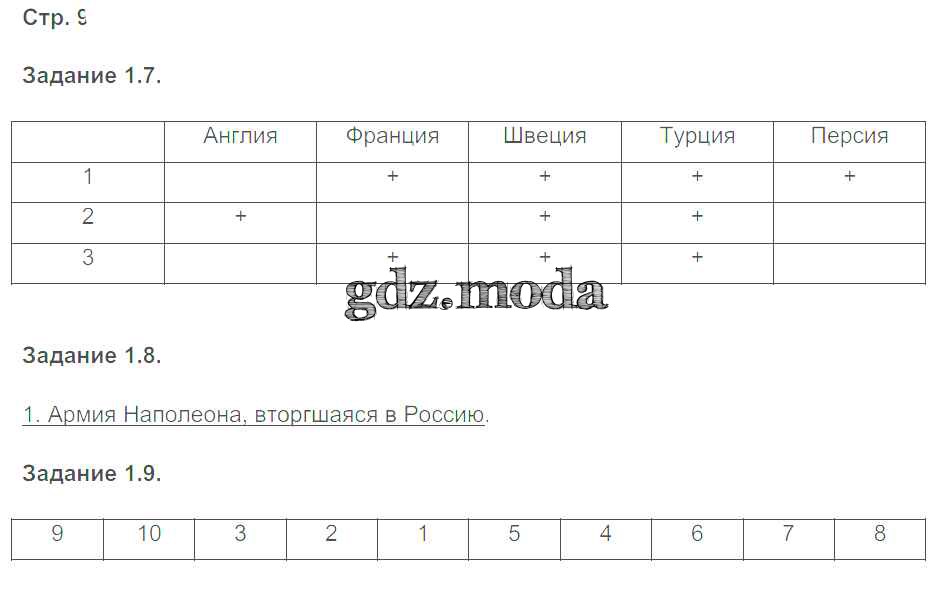 ГДЗ решение к заданию № 9 История России 8 класс рабочая тетрадь с контурными картами Симонова Е.В. Экзамен 2018 ФГОС бесплатно на гдз.мода!