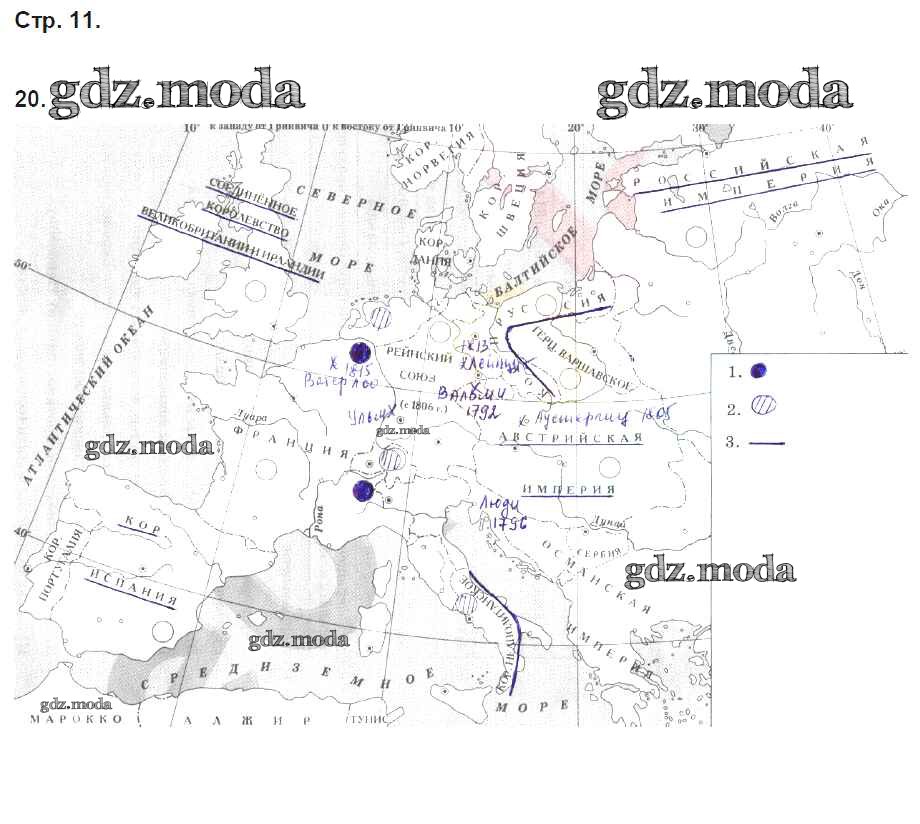 ГДЗ решение к заданию № 11 История 8 класс рабочая тетрадь с контурными картами Волкова Е.В. (к уч. Бурина С.Н.) Дрофа 2018 ФГОС бесплатно на гдз.мода!