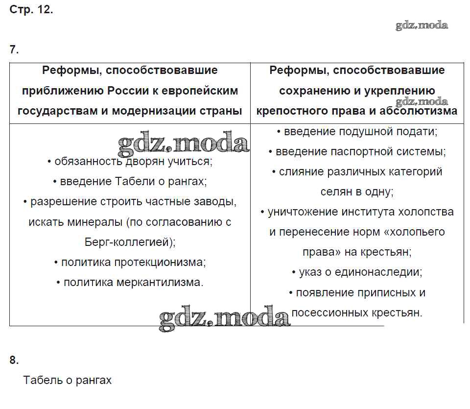 ГДЗ решение к заданию № 12 История России 8 класс рабочая тетрадь Симонова Е.В. Дрофа 2019 ФГОС бесплатно на гдз.мода!