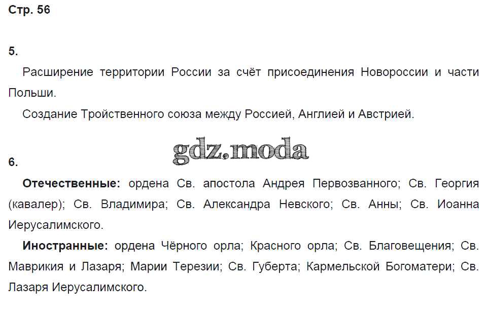 ГДЗ решение к заданию № 56 История России 8 класс рабочая тетрадь Симонова Е.В. Дрофа 2019 ФГОС бесплатно на гдз.мода!