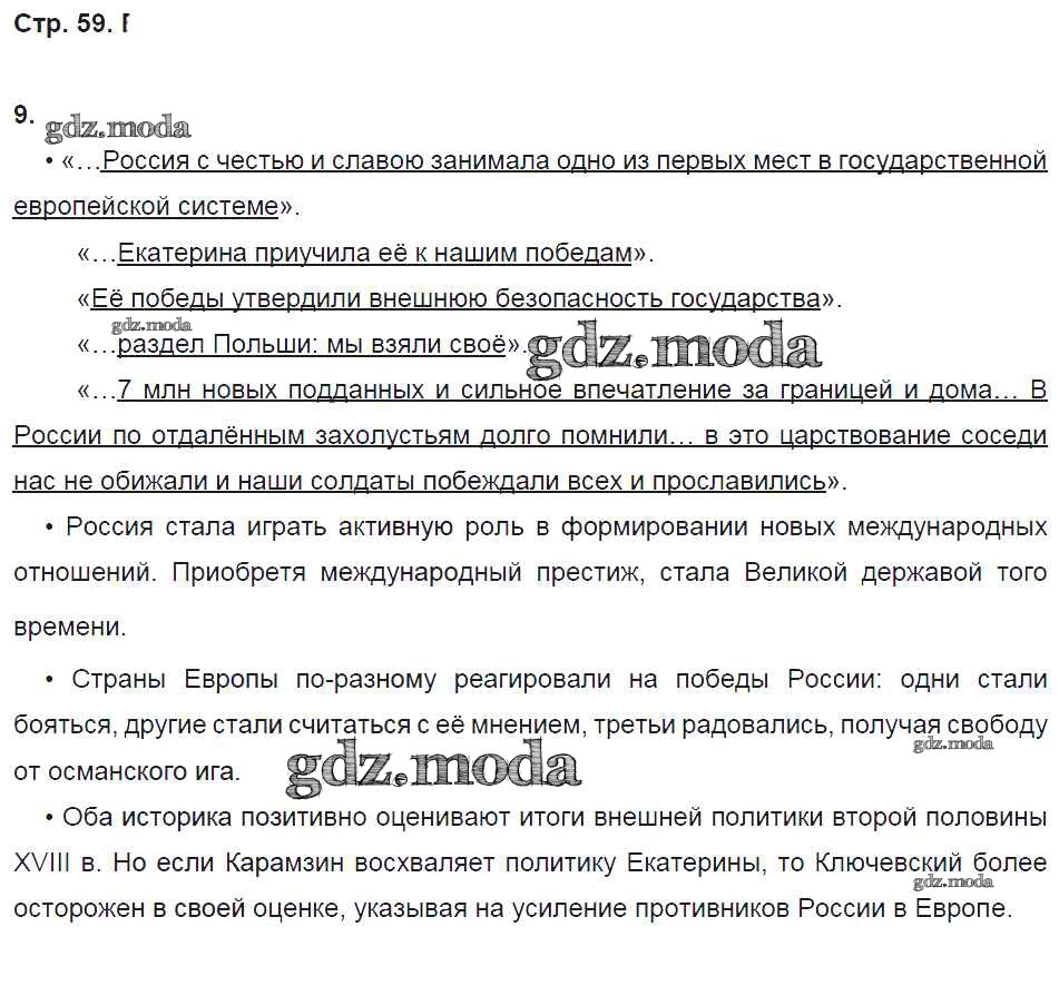 ГДЗ решение к заданию № 59 История России 8 класс рабочая тетрадь Симонова Е.В. Дрофа 2019 ФГОС бесплатно на гдз.мода!