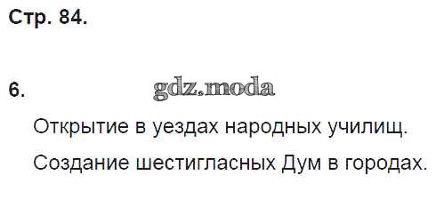 ГДЗ решение к заданию № 84 История России 8 класс рабочая тетрадь Симонова Е.В. Дрофа 2019 ФГОС бесплатно на гдз.мода!