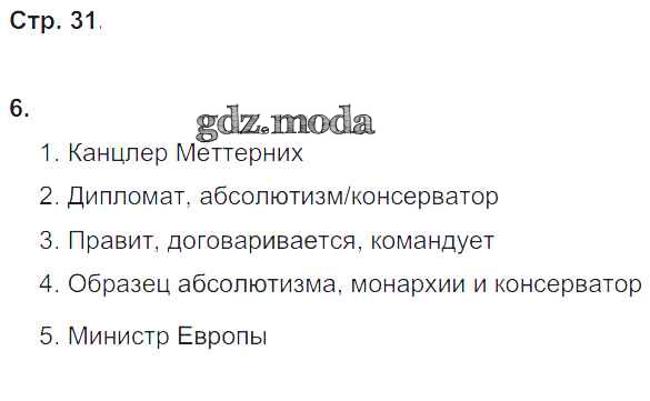 ГДЗ решение к заданию № 31 История 8 класс рабочая тетрадь Юдовская А.Я. Просвещение 2017 Часть 1, Часть 2 ФГОС бесплатно на гдз.мода!