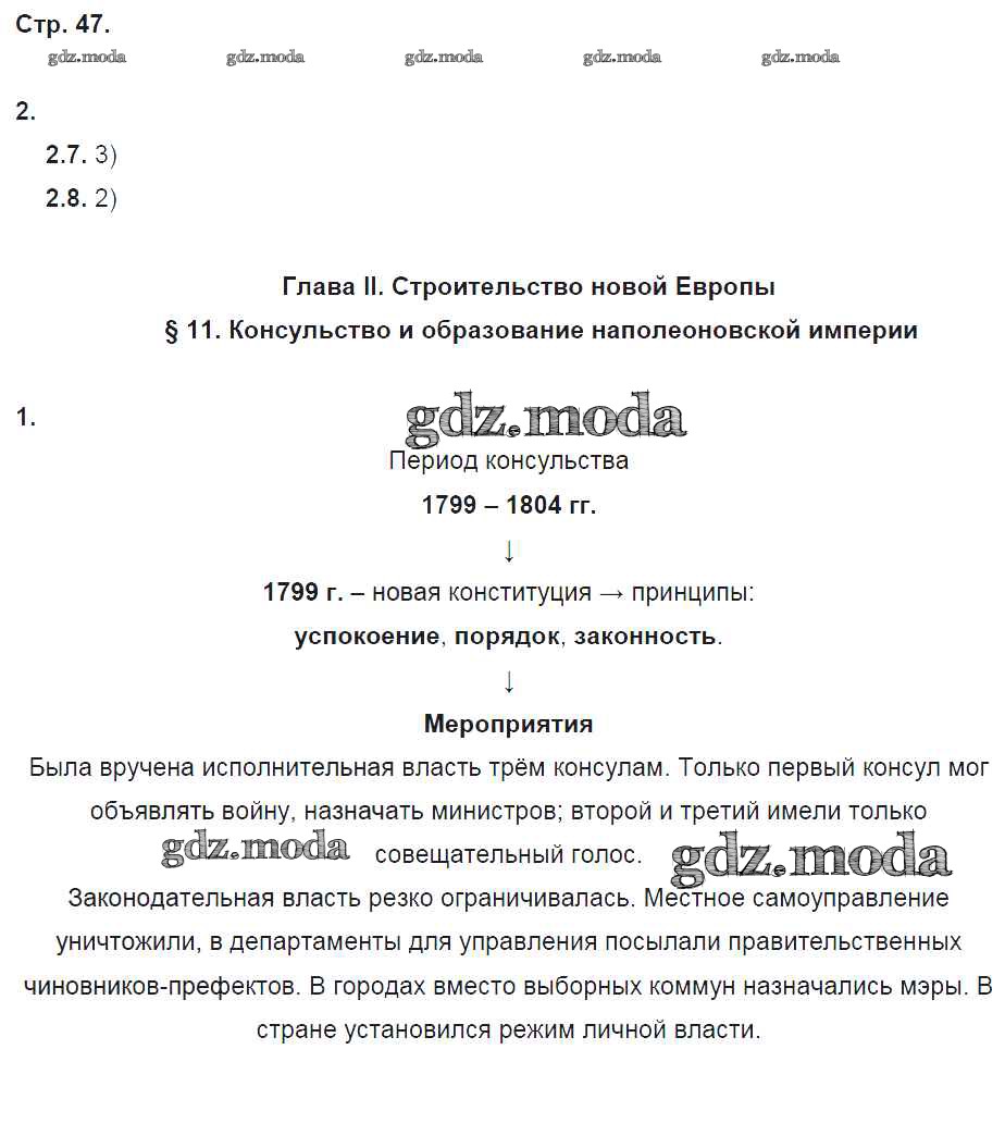 ГДЗ решение к заданию № 47 История 8 класс рабочая тетрадь Юдовская А.Я. Просвещение 2017 Часть 1, Часть 2 ФГОС бесплатно на гдз.мода!