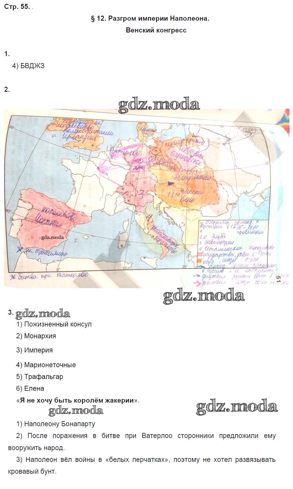 ГДЗ решение к заданию № 55 История 8 класс рабочая тетрадь Юдовская А.Я. Просвещение 2017 Часть 1, Часть 2 ФГОС бесплатно на гдз.мода!