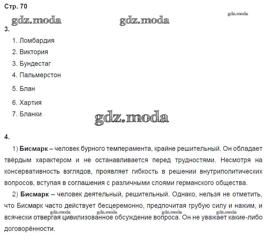 ГДЗ решение к заданию № 70 История 8 класс рабочая тетрадь Юдовская А.Я. Просвещение 2017 Часть 1, Часть 2 ФГОС бесплатно на гдз.мода!
