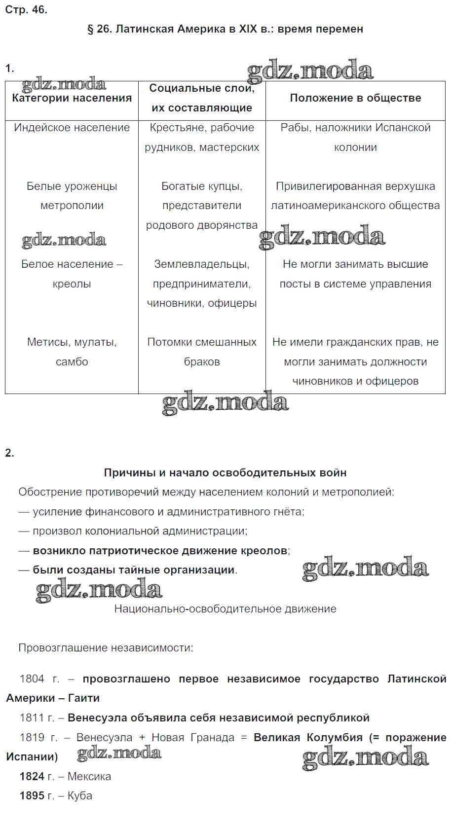 ГДЗ решение к заданию № 46 История 8 класс рабочая тетрадь Юдовская А.Я. Просвещение 2017 Часть 1, Часть 2 ФГОС бесплатно на гдз.мода!