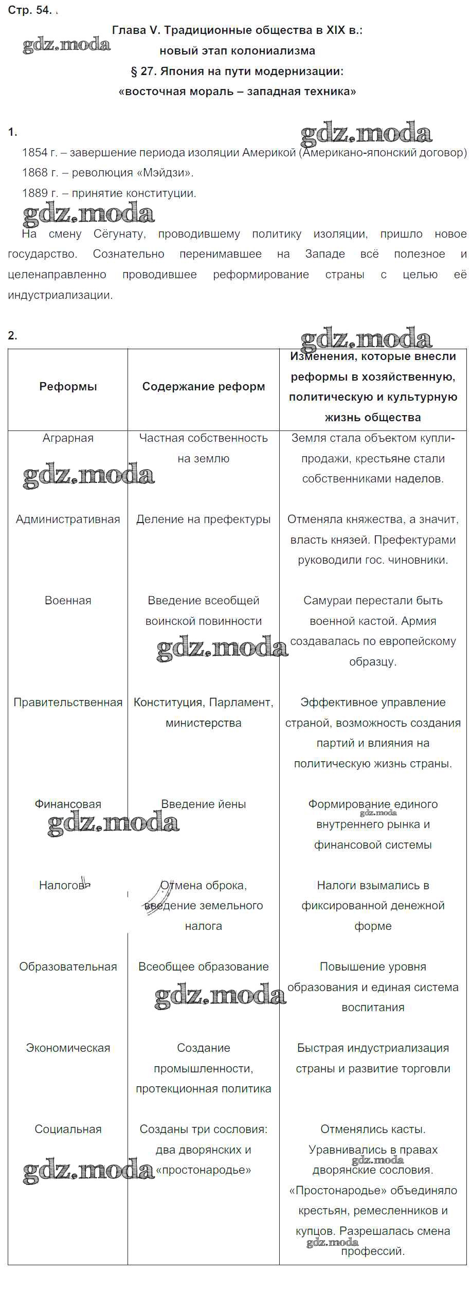 ОТВЕТ на задание № 54 Рабочая тетрадь по Истории 8 класс Юдовская УМК