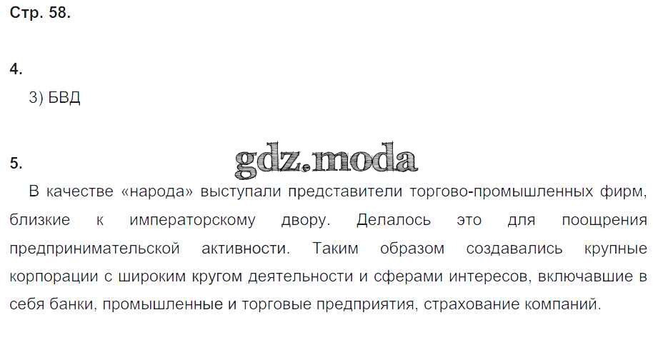 ГДЗ решение к заданию № 58 История 8 класс рабочая тетрадь Юдовская А.Я. Просвещение 2017 Часть 1, Часть 2 ФГОС бесплатно на гдз.мода!